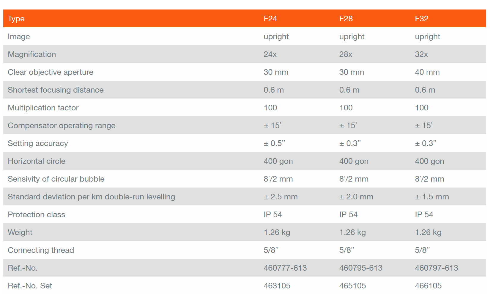Τα επίπεδα F διαθέτουν οπτικάπρώτης κατηγορίας με μεγέθυνση 24x, 28x ή 32x, κορυφαίας ποιότηταςαντισταθμιστή μαγνητικής απόσβεσης και μοντέρνο σχεδιασμό. Ακριβώς κατάλληλογια χρήση κάτω από δύσκολες συνθήκες.